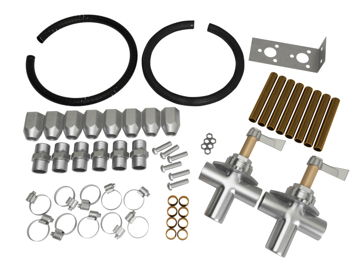 Установка данного бака предусматривает замену оригинальных кронштейнов на крепления производства БАКОР (на родные кронштейны установить невозможно из увеличенных габаритов бака). Вся имеющаяся на баке фурнитура переносится со старого бака на новый (топливозаборник, датчик уровня топлива, сапун). Снизу бака предусмотрено сливное отверстие с болтом на медной шайбе. Бак оборудован резьбовой заливной горловиной.